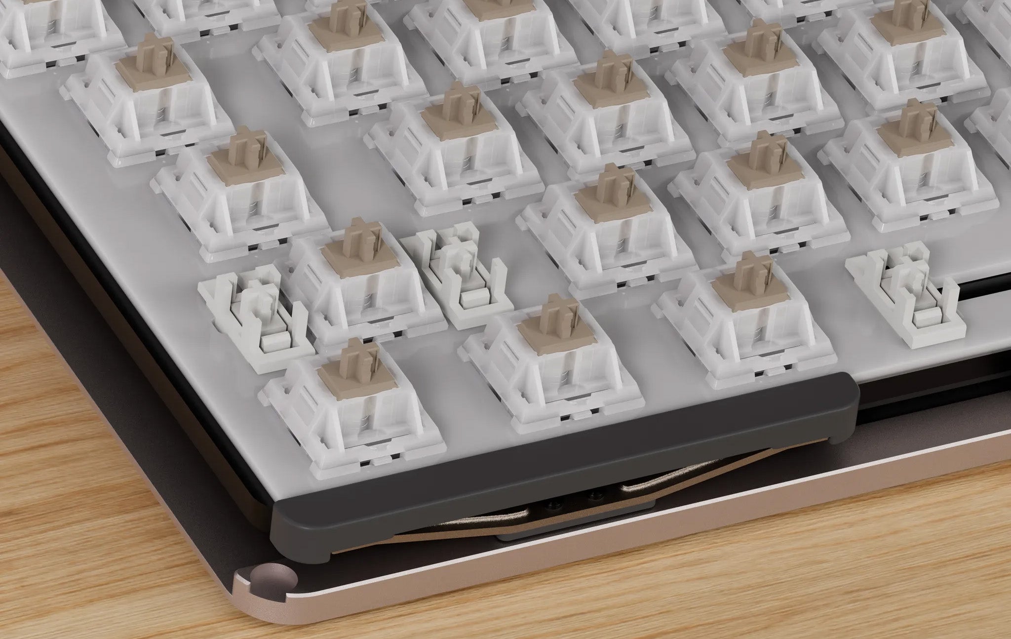 Underneath, a generous stainless steel weight provides both elegance and stability. It enhances acoustic resonance, creating a more focused typing experience while adding an undeniable premium touch.