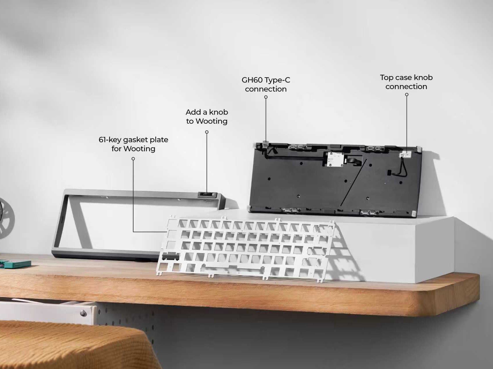 ZOOM64 GH60 Case kit ( For Wooting60 ): Top case, Bottom case, Alu Plate no switches and keycaps.