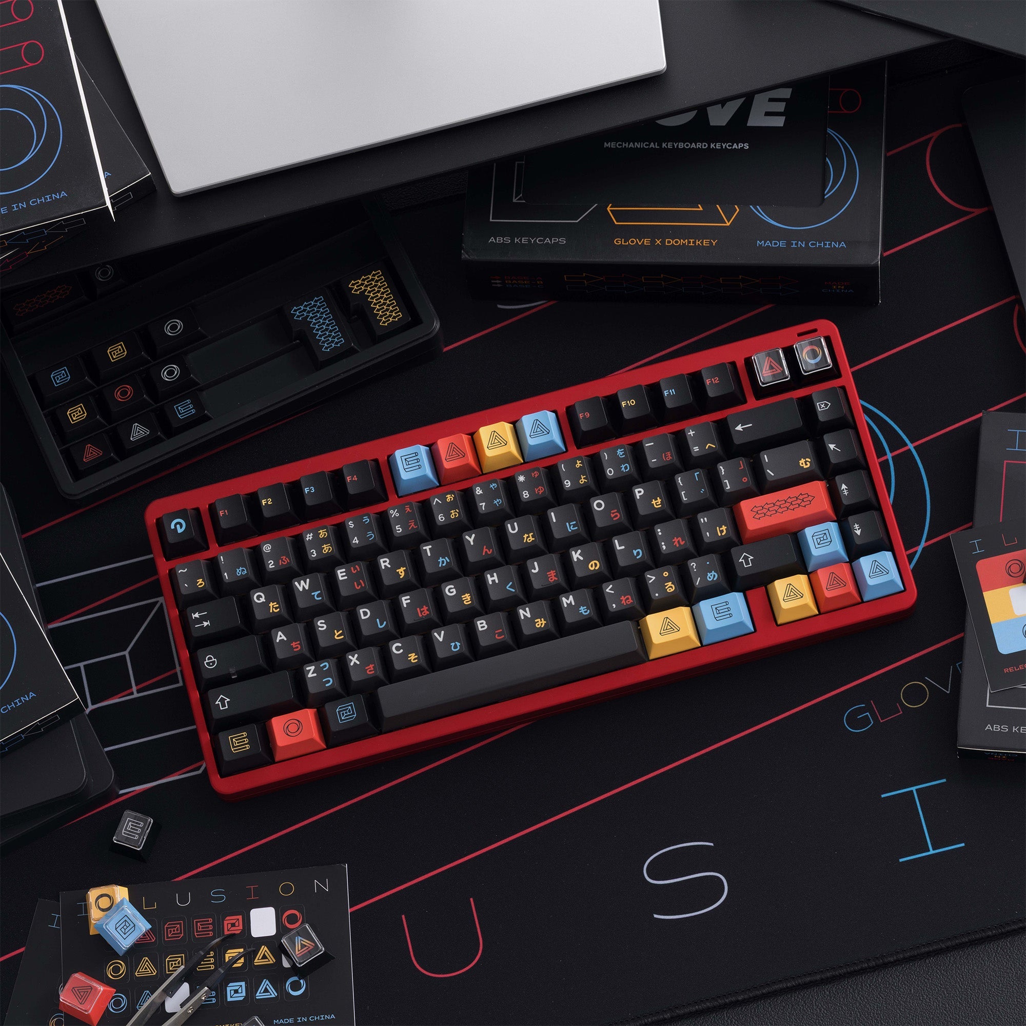 Cherry‑profile ABS with double/triple‑shot legends by Glove x DMK. A versatile colorway offered in multi‑kit formats across runs.