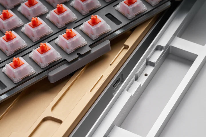 We've added a forcebreak layer at the contact points between the top and bottom cases, creating a soft barrier between the metal surfaces to dampen vibration noise.
